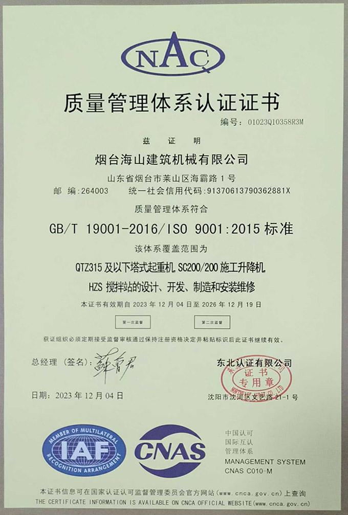 煙臺海山建筑機械有限公司坐落于山東省煙臺市高新技術(shù)開發(fā)區(qū),占地面積160000多平方米,目前擁有1200余名員工。秉承誠信·勤奮·執(zhí)著·創(chuàng)新的企業(yè)發(fā)展理念,以人才·質(zhì)量·管理·服務為企業(yè)發(fā)展途徑...